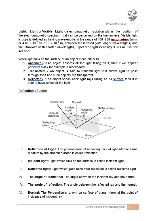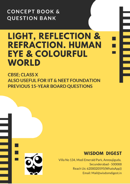 The Wisdom Digest Concept Book on “Light: Reflection and Refraction, Human Eye and Colourful world” is a complete preparation kit designed for Class 10 CBSE students. It presents all key concepts from the NCERT textbook in a clear, concise, and student-friendly manner, helping learners understand the behavior of light, its reflection, refraction, and image formation by mirrors and lenses.