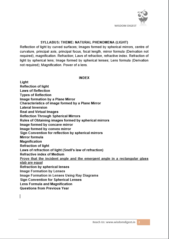 Students will learn about laws of reflection and refraction, spherical mirrors, lenses, lens formula, magnification, and related phenomena through simple explanations, illustrative diagrams, and real-life examples that make the concepts easy to grasp and remember.